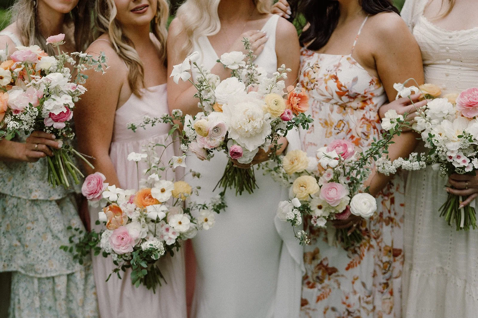 Ranunculus, agrostemma, spirea, mock orange, silene, Parrot tulips